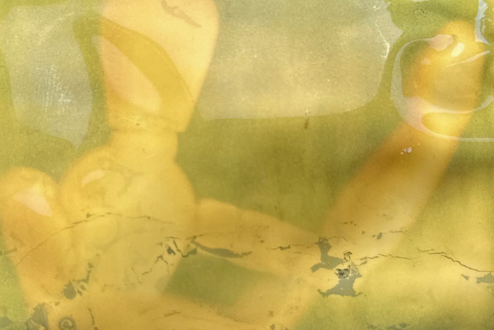Vor etwa 20 Jahren habe ich mit einer Polaroidkamera eine Bildserie aufgenommen, die eine Zeichenholzpuppe in verschiedenen Körperhaltungen zeigt. Nach dem Belichten habe ich die Bilder getoastet, um zusätzliche Effekte zu erzielen.